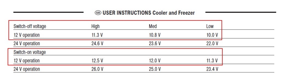 Če je to kakšna od EZC25, EZC35 ali EZC45, potem imaš v navodilih tri možne nastavitve in tabelo napetosti, pri katerih izklaplja in vklaplja. Vse so daleč od 12,00V (najnižja je 10V izklop-11,3V vklop nastavitev LOW)